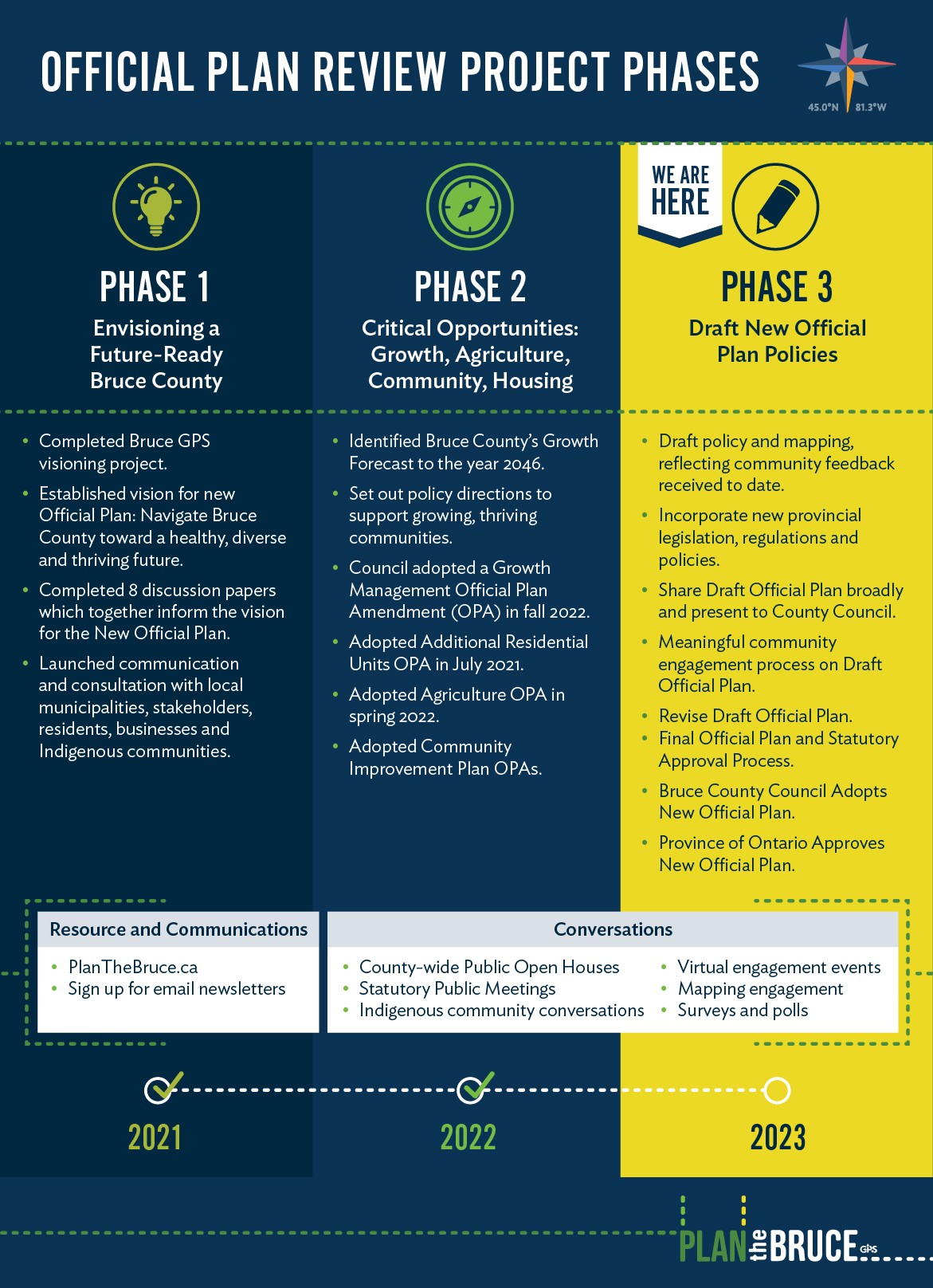 Please Note: This page will be updated regularly with project updates and opportunities to engage. In the meantime, if you have any questions or comments, please email planthebruce@brucecounty.on.ca.